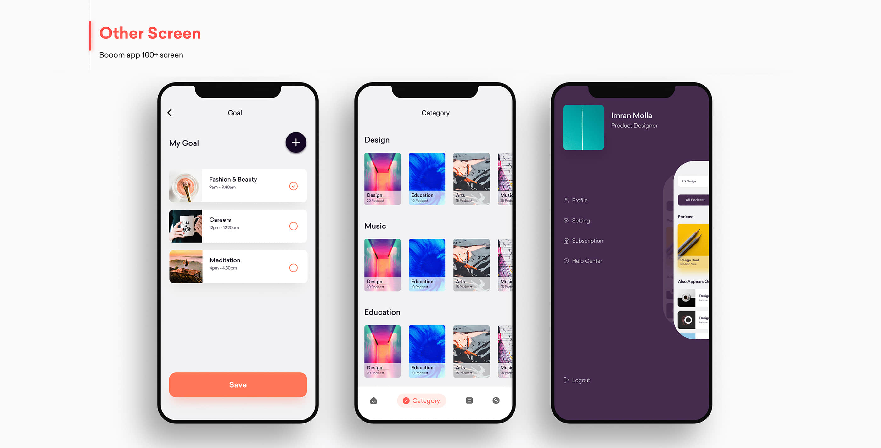 booom Podcast App, people easily find a podcast, set a goal.